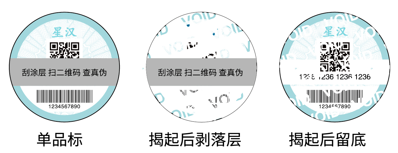 1、不可復制、具有防轉移效果的防偽標簽